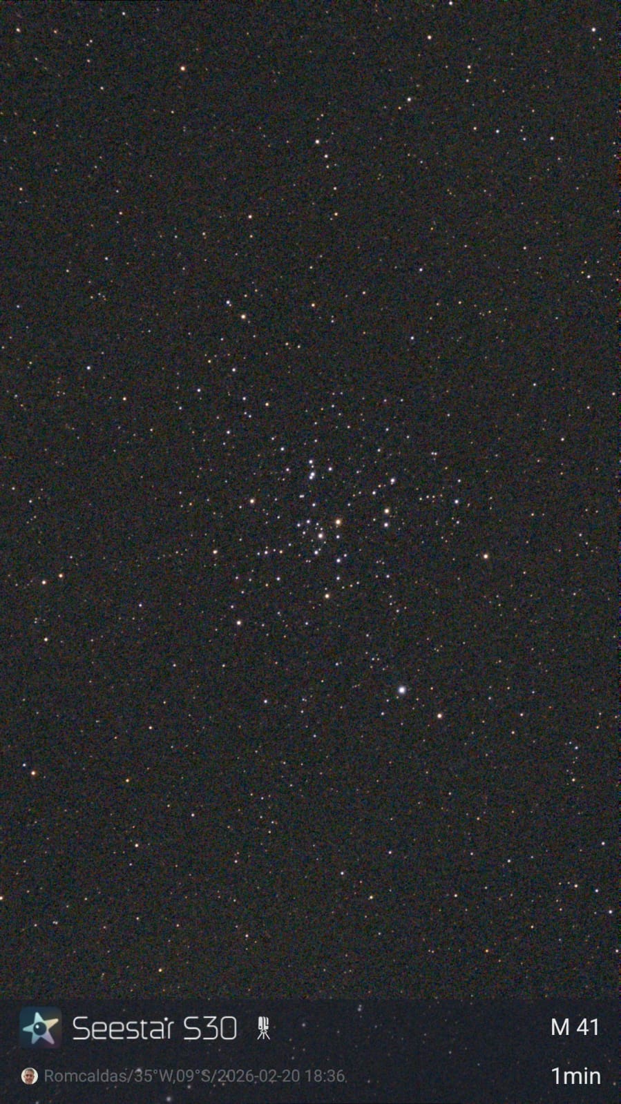 Aglomerado M41 no Cão Maior. Registro de Romualdo Caldas.