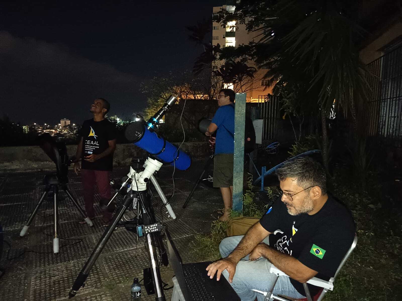 Às 16h30, iniciou-se a montagem dos telescópios, antecipando a noite de descobertas. Para convidar toda a comunidade, nosso presidente, Romualdo Caldas, realizou uma transmissão ao vivo no Instagram do CEAAL às 16h30, explicando a atividade e fazendo o convite oficial: a observação pública teria início às 18h30.