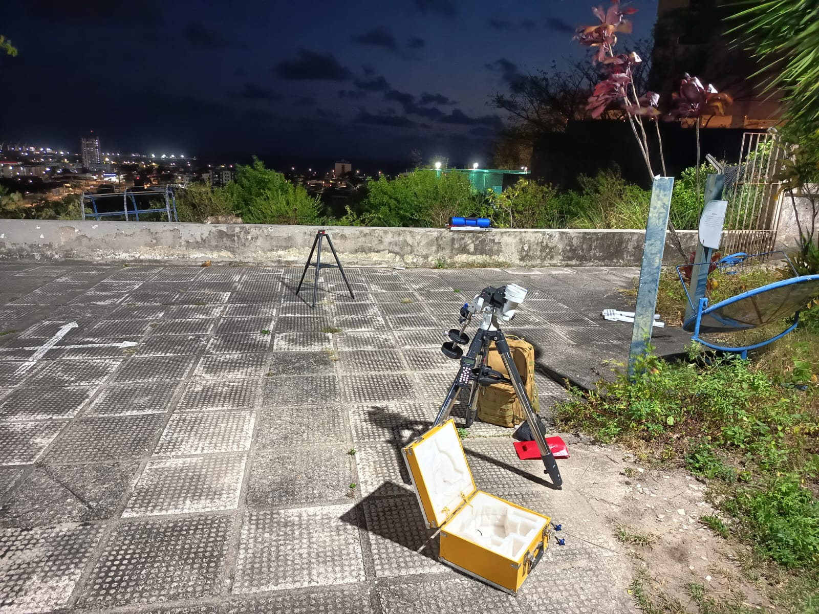 O plano inicial incluía o uso dos modernos telescópios robóticos Seestar S50 Darimann e S30. Romualdo e João Victor dedicaram-se à operação desses instrumentos. No entanto, as condições atmosféricas apresentaram um desafio: fortes ventos que prejudicaram a estabilidade necessária para capturas de qualidade, impedindo os registros com esses equipamentos específicos.